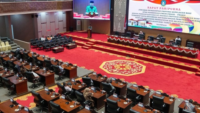 Paripurna tersebut beragenda Jawaban Pemerintah atas Pandangan Umum Fraksi-Fraksi terhadap Nota Keuangan dan Ranperda APBD Kepri Tahun Anggaran 2026.