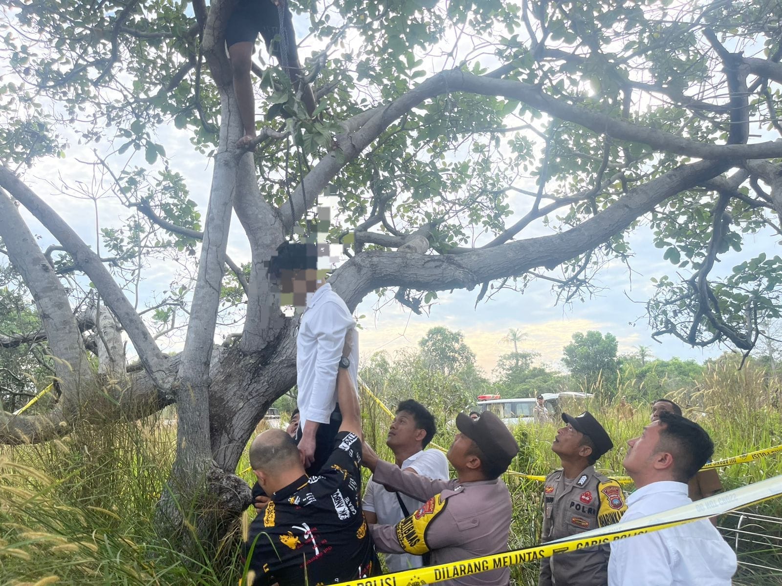 Bintan (eska) – Warga Kawal Kecamatan Gunung Kijang, Kabupaten Bintan dihebokan atas penemuan seorang pria, JYP yang merupakan warga Tanjungpinang tergantung di atas pohon “Jambu Monyet”, Senin (27/10/2025).