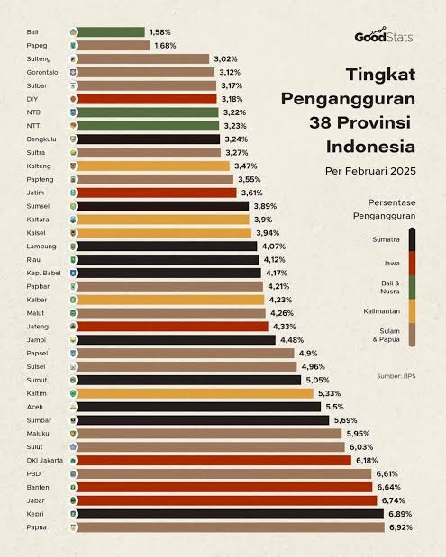 Tanjungpinang (eska) – Berdasarkan data dari Badan Pusat Statistik (BPS), Provinsi Kepulauan Riau (Kepri) saat ini menempati peringkat ke-2 Tingkat Pengangguran Terbuka (TPT) tertinggi di Indonesia mencapai 6,89 persen.