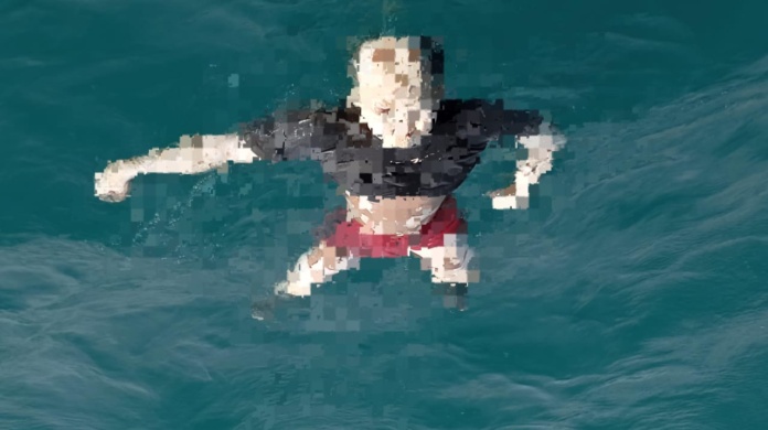 Jasad korban ditemukan dalam kondisi mengapung dengan mengenakan celana pendek merah dan kaos hitam.